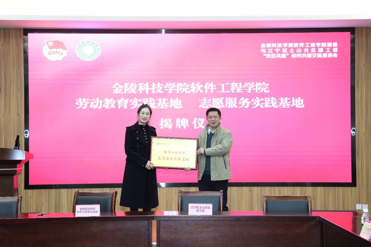仪式上,双方团组织负责人共同签署“双百共建”合作协议,徐斌与张秀芸见证签约。随后,“志愿服务实践基地”与“劳动教育实践基地”正式揭牌成立。