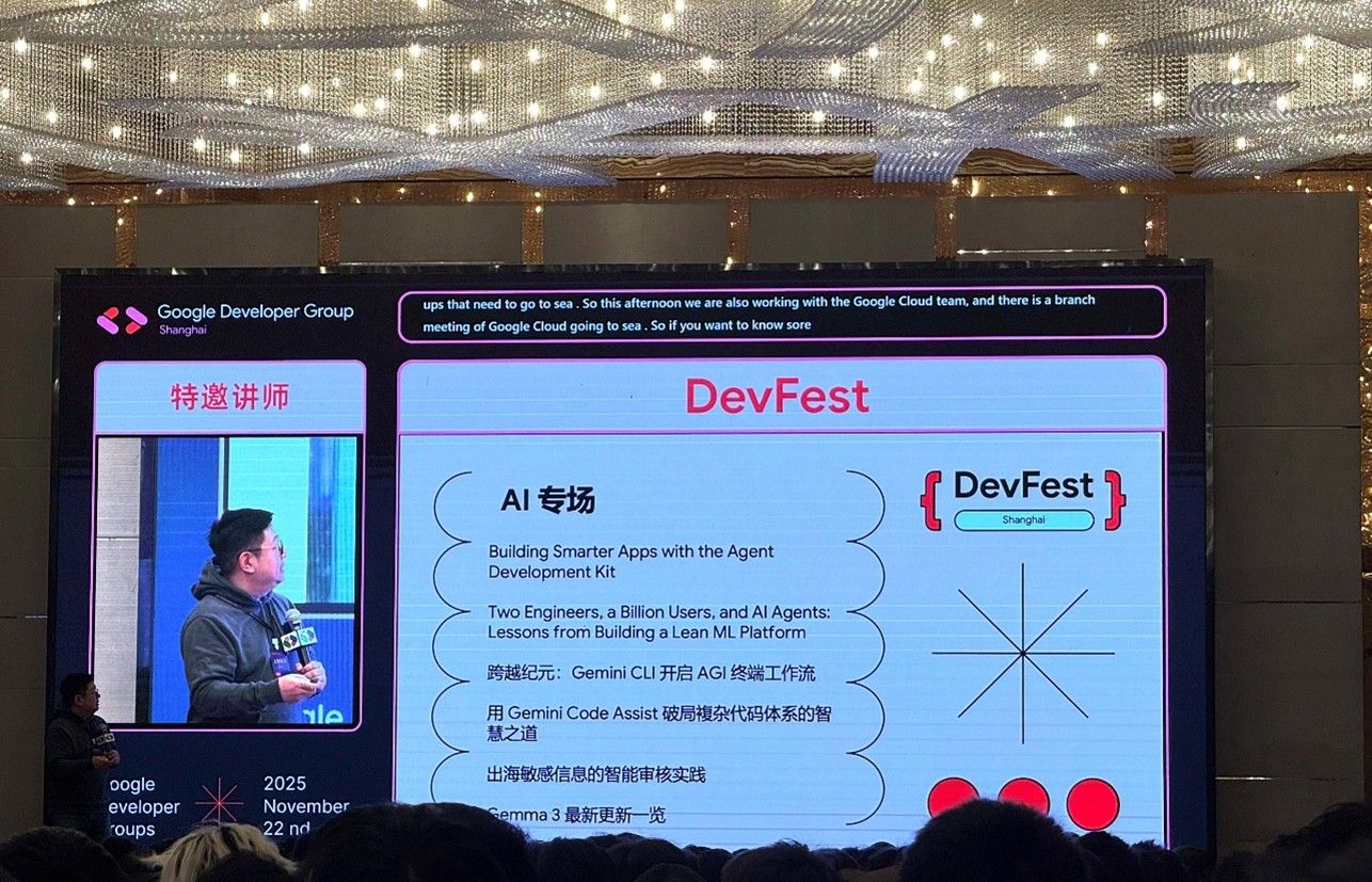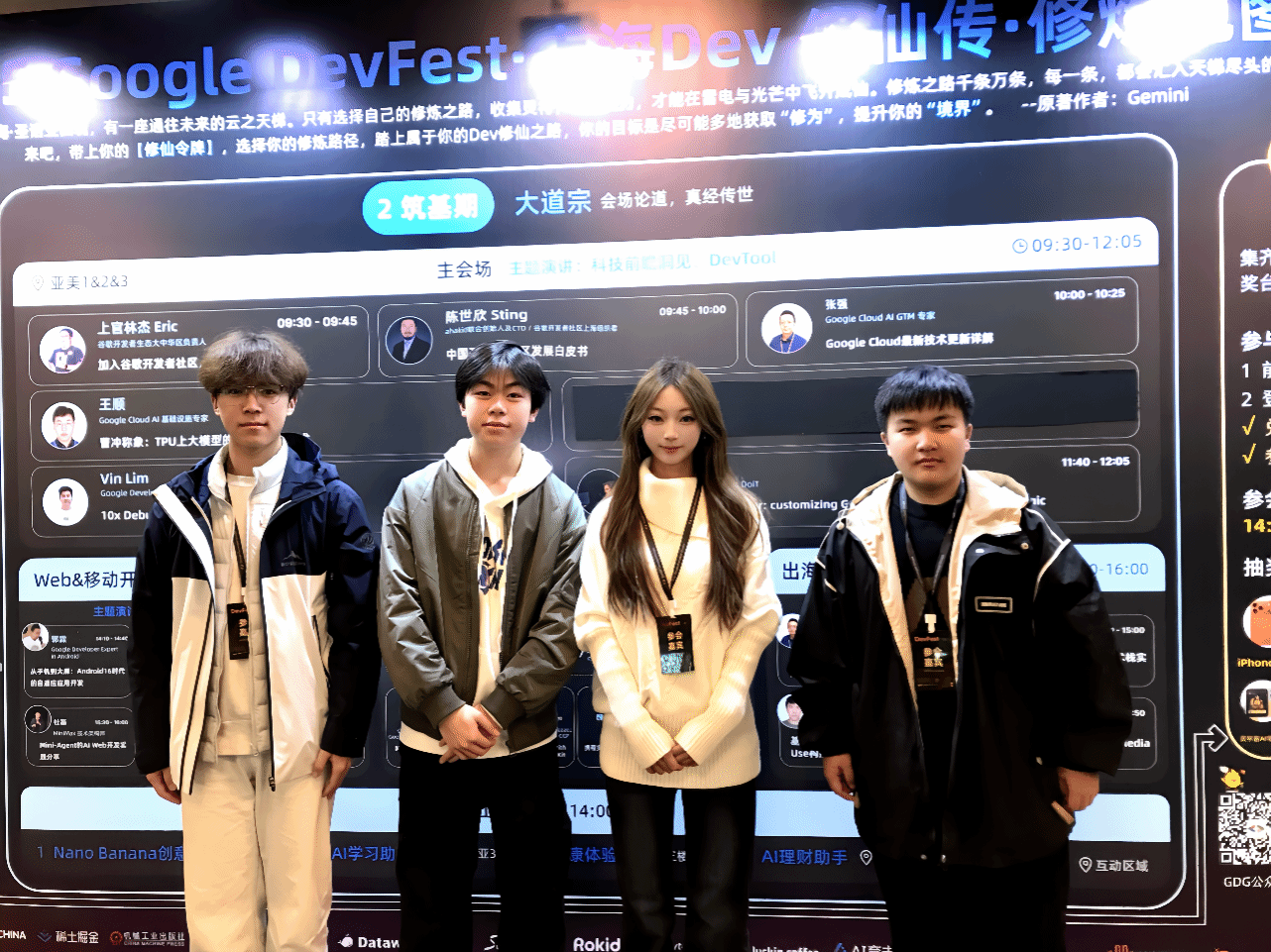 2025年11月22日,金陵科技学院开放原子开源社师生代表前往上海国际会议中心,参加DevFest 2025技术大会并进行技术交流。