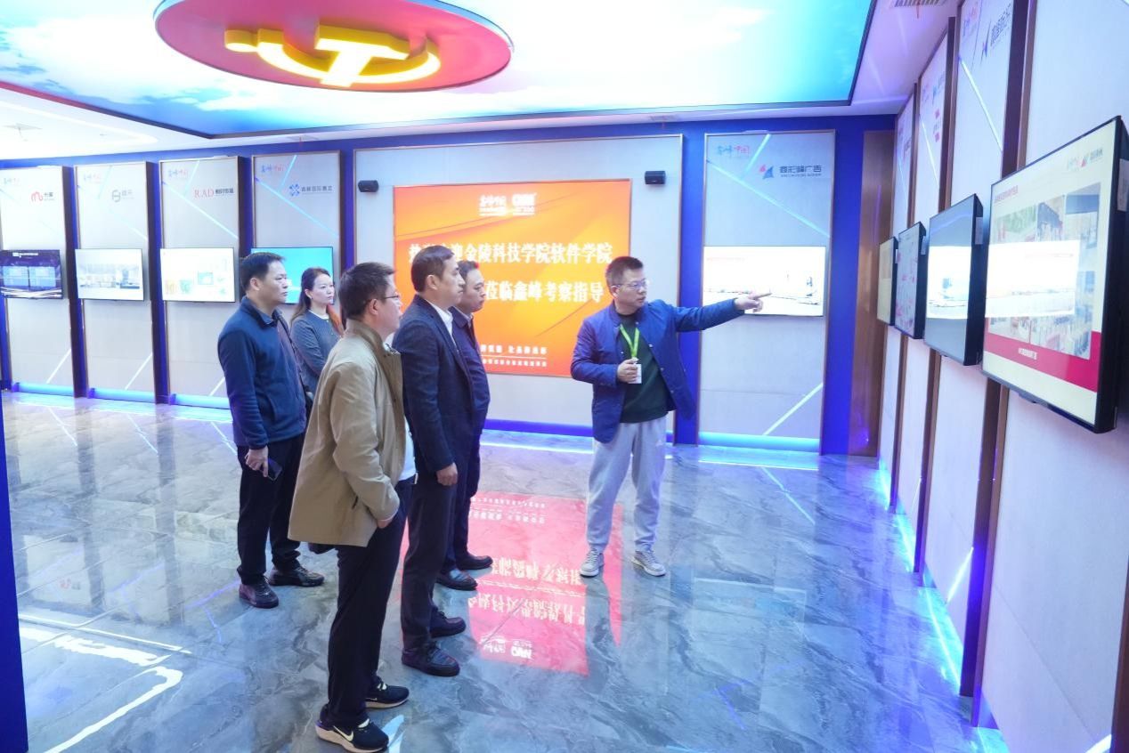 在鑫峰中国,南京鑫峰广告集团有限公司常务副总裁蒋立荣热情接待并介绍人工智能、大数据领域业务布局及校企合作经验。双方结合企业业务与学院专业方向,就技术协同创新、实践资源共享等契合点进行了交流。徐斌介绍软件工程学院相关领域师资与培养成果,提出共建劳动教育实践基地的意向,希望未来与企业在更多领域实现深度合作,共同书写产教融合新篇章。