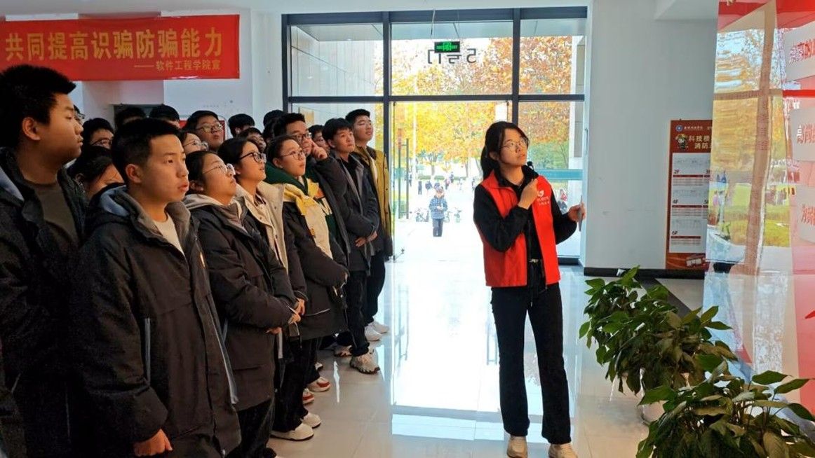 活动伊始,在学院志愿者的引领下,建湖二中的同学们先后参观了校史馆和软件工程学院雨花英烈展厅。在雨花英烈展厅内,讲解员围绕学院思政工作在文化、时代和专业特色凝练方面的重要举措,结合南京本土丰富的红色文化历史资料,以及学院全面开展的鲜活实践案例,进行了生动且深入的宣讲。