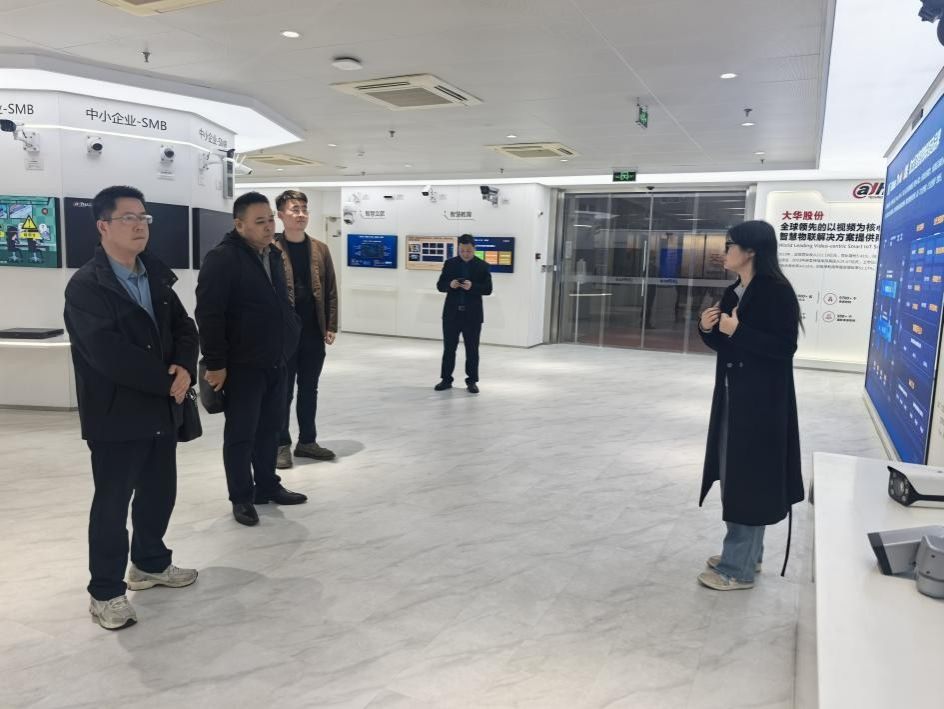 随后学院考察团来到江大华(南京)有限公司参观,企业覆盖智慧城市、交通、公安、金融、能源等板块。座谈交流会上,周长亮对学院一行到访表示热烈欢迎,详细介绍了企业发展历程、核心业务、技术优势及人才需求导向,明确公司深耕智慧物联,对软件及智能科学高素质人才需求迫切,期待与高校深化合作、实现双向赋能。徐斌就人才培养模式及提升毕业生就业质量,指出校企合作是深化产教融合的关键路径,学院始终重视与行业头部企业合作,希望以此次访企拓岗为契机搭建多领域合作桥梁。徐永华重点介绍了学院学科建设成效、专业特色、结合专业教学实际,提出共同培养人才的合作设想,得到企业方积极回应。