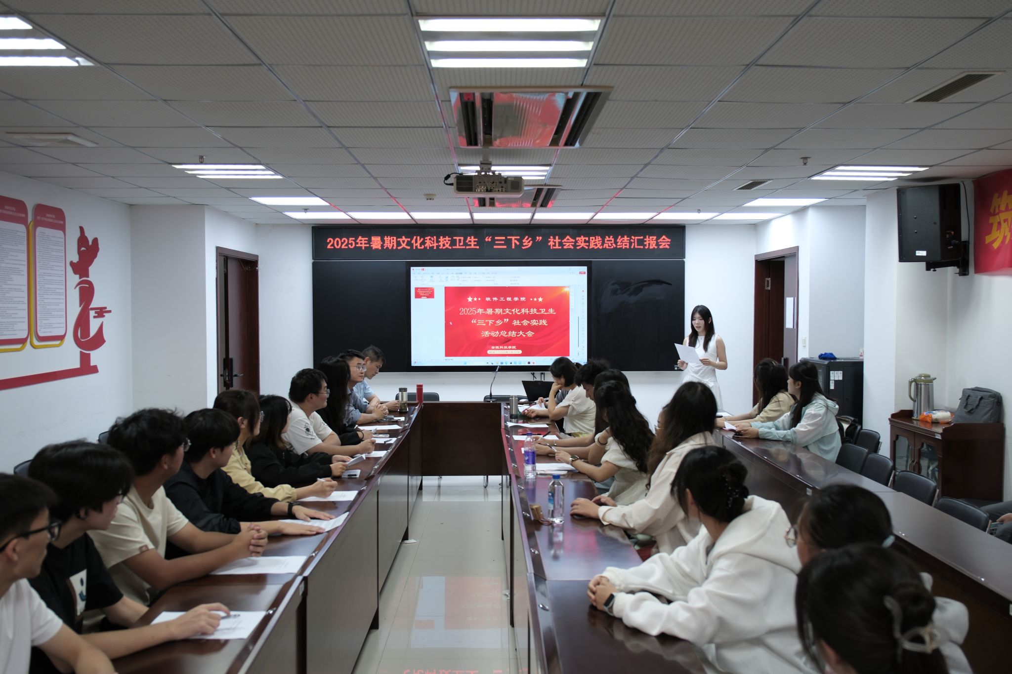 9月26日,软件工程学院在科技楼2-423隆重召开了2025年暑期文化科技卫生“三下乡”社会实践活动总结大会。院团总支书记张理航、辅导员邵彦婷、王天宇、殷燕、院团总支学联学生干部及部分学生代表参加了本次大会,与各实践团队代表共同回顾了暑期的实践历程与丰硕成果。