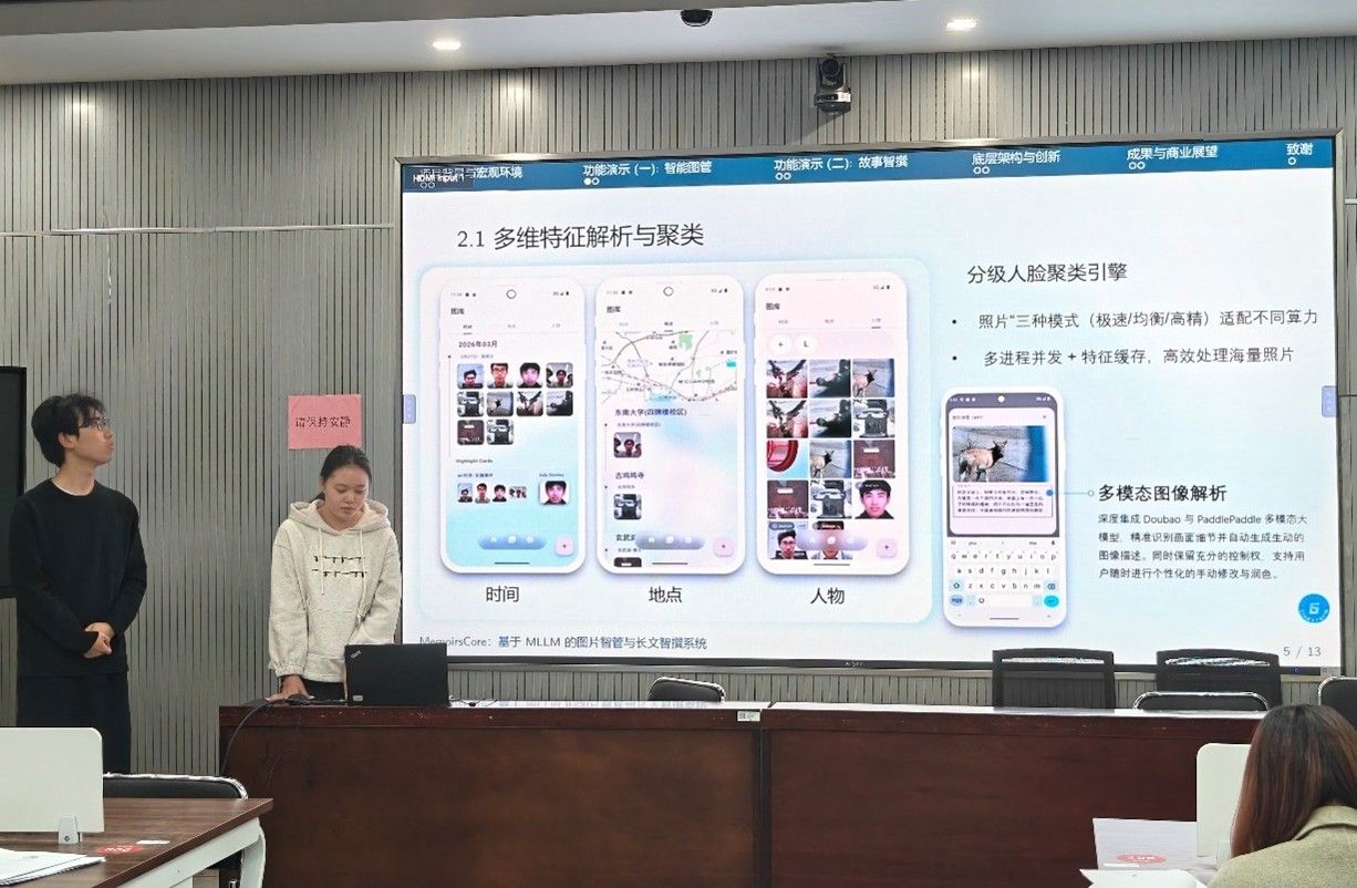 比赛采用“作品演示+现场答辩”的形式进行。各参赛团队依次展示了项目设计思路、技术架构、核心功能及应用场景,并接受评委提问。专家评审团队由软件工程学院、智能科学与控制工程学院、计算机工程学院、网络安全学院组成,5位的专家从选题价值、技术创新、作品完成度等维度对作品进行了综合评分,给出了指导意见。