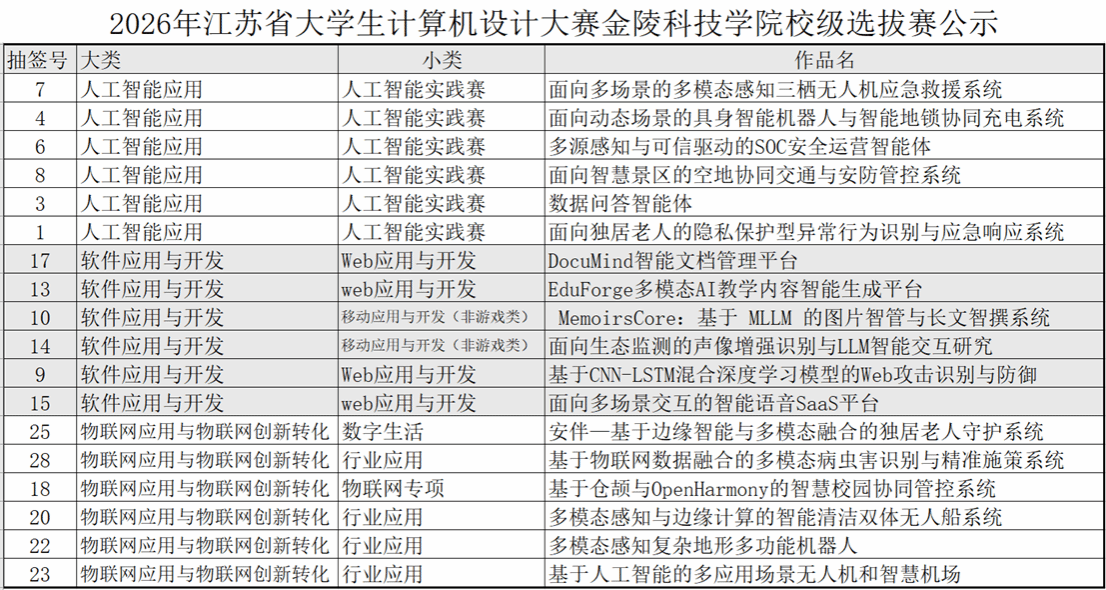 4月12日星期日,由学校创新创业学院、教务处、软件工程学院联合主办的“2026年江苏省大学生计算机设计大赛”校级选拔赛在科技楼2-311圆满落幕。本次比赛旨在激发我校学生的计算机创新潜能,提升实践能力与团队协作水平,为省级赛事输送高质量作品。